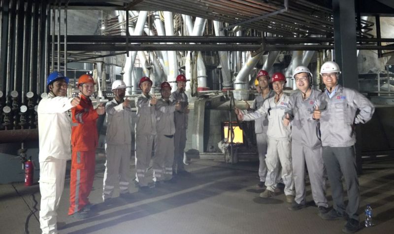 2022年8月,項(xiàng)目進(jìn)入最后的沖刺階段。作為項(xiàng)目建設(shè)負(fù)責(zé)人,劉寅更是駐守到一線,在工地、車間現(xiàn)場(chǎng),帶領(lǐng)設(shè)備安裝管理團(tuán)隊(duì),專攻調(diào)試期間的現(xiàn)場(chǎng)突發(fā)問(wèn)題,實(shí)行“24小時(shí)現(xiàn)場(chǎng)排班制”,一刻不漏盯現(xiàn)場(chǎng)、盯設(shè)備、盯產(chǎn)線。8月份的印尼正值高溫高熱季節(jié),劉寅的身先士卒也影響了所有項(xiàng)目建設(shè)、調(diào)試人員,最終大家團(tuán)結(jié)一心,奮力沖刺,最終打贏了這場(chǎng)“硬仗”?;貞涍@段經(jīng)歷,劉寅至今印象深刻,他幽默地說(shuō)道:“大家24小時(shí)都在現(xiàn)場(chǎng),每天一身臭汗,全部變成了‘油膩男’,但每個(gè)人眼神中的堅(jiān)毅讓我相信項(xiàng)目一定能成。那是一段難忘的經(jīng)歷,很榮幸與他們?cè)谕粭l’戰(zhàn)壕‘里作戰(zhàn),一起為勝利而戰(zhàn)!”