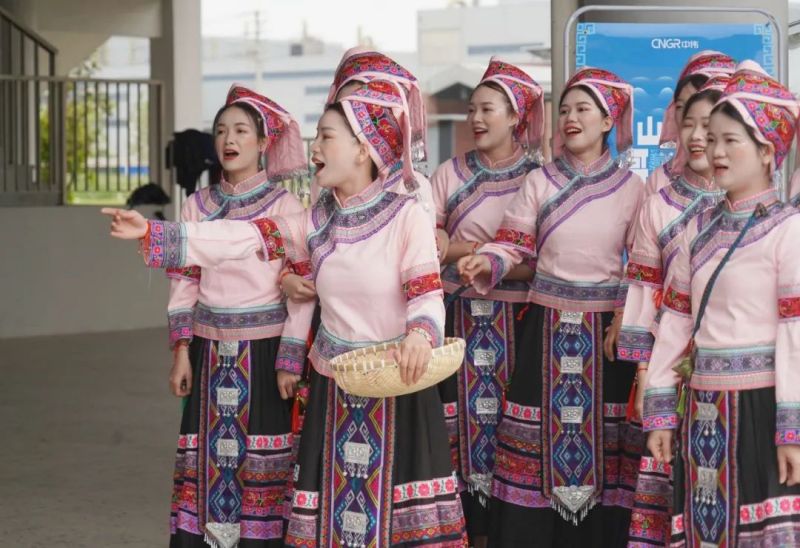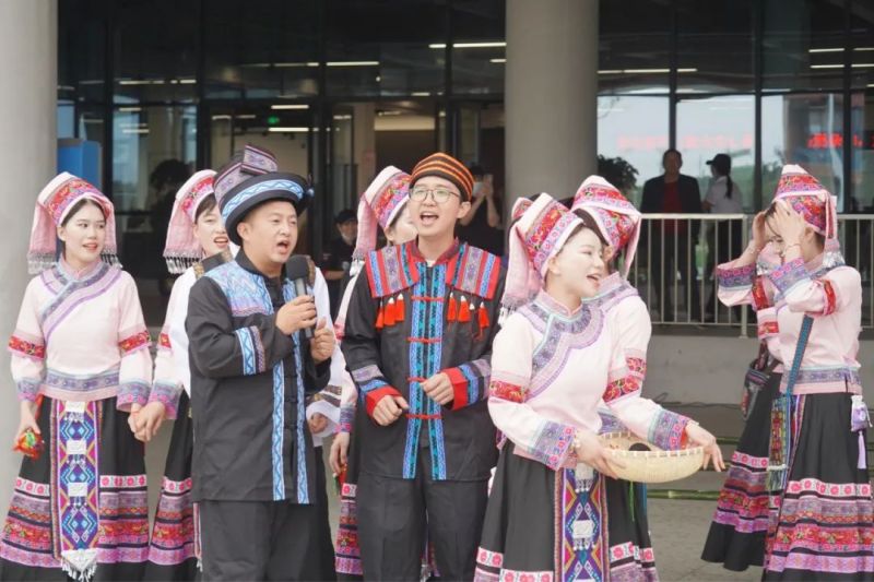 活動(dòng)以山歌對唱的形式進(jìn)行。參加對歌比賽的員工們,身著民族服飾熱情開唱?!逗酶璨拧贰妒裁此娲蚋贰贰渡礁韬帽却航?.....一首首洋洋盈耳、遏云繞梁的歌曲,引得大家紛紛駐足欣賞,現(xiàn)場氣氛熱鬧非凡。