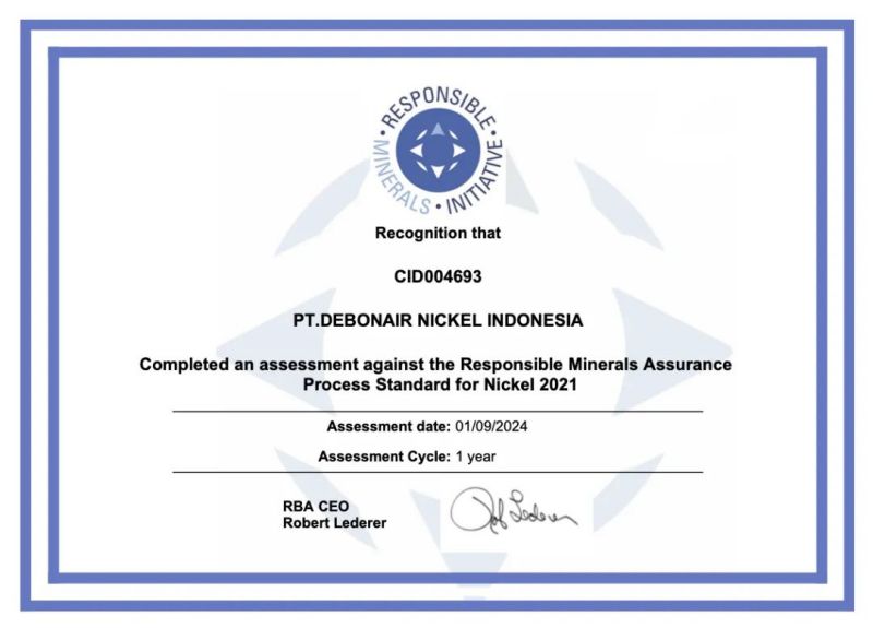 近日,位于中偉印尼緯達(dá)貝產(chǎn)業(yè)基地的印尼德邦鎳業(yè)有限公司成功獲得責(zé)任礦產(chǎn)倡議(Responsibie Minerals Initiative,簡稱“RMI”)頒發(fā)的礦產(chǎn)供應(yīng)鏈盡責(zé)管理審核通過證書,成為印尼首家申請(qǐng)并通過RMI礦產(chǎn)供應(yīng)鏈盡責(zé)管理審核的鎳粗煉企業(yè)。