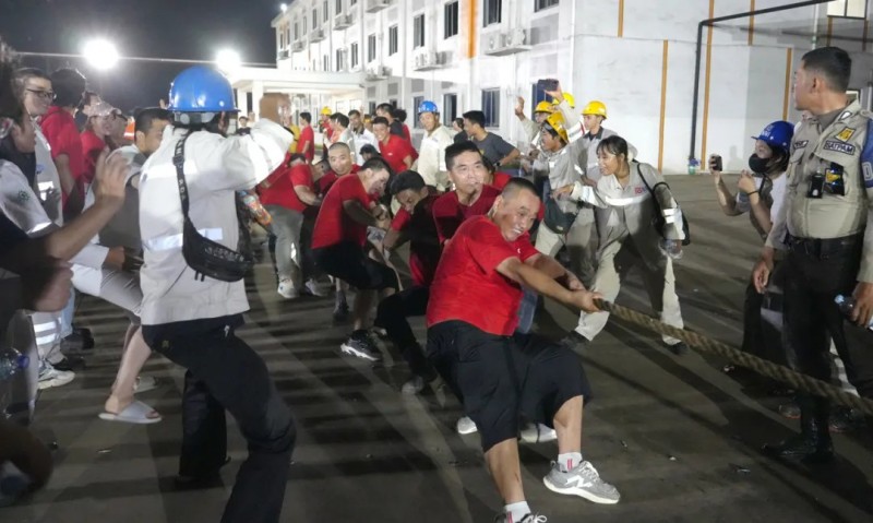在基地的生活廣場(chǎng)上,陣陣吶喊加油聲響徹天際,“首屆中印尼員工拔河比賽”正進(jìn)行得熱火朝天。每一次奮力的拉扯都凝聚著團(tuán)隊(duì)的力量與信念,在一聲聲口號(hào)里,中印尼員工擰成一股繩,咬緊牙關(guān),全力以赴,不僅展現(xiàn)了不屈不撓的精神風(fēng)貌,更在每一次勝利與失敗中體會(huì)到了團(tuán)隊(duì)協(xié)作的真諦和勇于拼搏、不斷前行的精神力量。