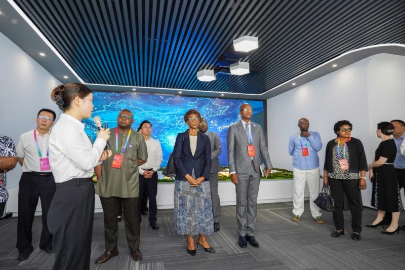 考察團(tuán)一行先后參觀了中偉科技館、中偉全球研發(fā)中心等,詳細(xì)了解中偉發(fā)展歷程、科技創(chuàng)新以及全球產(chǎn)業(yè)布局等情況。在科技館,劉一重點向考察團(tuán)介紹了中偉“資源開發(fā)-材料智造-全球循環(huán)”的新能源材料產(chǎn)業(yè)生態(tài)以及公司圍繞這一生態(tài)所作的的全球產(chǎn)業(yè)布局。代表團(tuán)成員認(rèn)真聆聽,對中偉的生態(tài)化、全球化發(fā)展表示由衷的贊賞,并不時就中偉在非洲產(chǎn)業(yè)布局和未來規(guī)劃進(jìn)行問詢,探討深入合作的可能性。