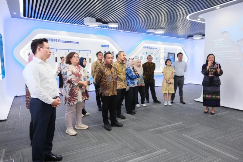 在中偉科技館和全球研發(fā)中心參觀通道,Tri Winarno局長(zhǎng)一行對(duì)中偉的一體化產(chǎn)業(yè)以及研發(fā)體系表示出濃厚興趣。劉一介紹道,中偉股份已建立起“資源開發(fā)-材料智造-循環(huán)回收”的新能源材料產(chǎn)業(yè)生態(tài),結(jié)合行業(yè)領(lǐng)先的生產(chǎn)工藝,充分發(fā)揮資源的利用價(jià)值,助力產(chǎn)業(yè)可持續(xù)發(fā)展;同時(shí),中偉研發(fā)投入逐年提升,國(guó)際化產(chǎn)學(xué)研用體系不斷完善,通過(guò)行業(yè)超大規(guī)模研發(fā)車間推動(dòng)前端研發(fā)成果轉(zhuǎn)化落地,以科技創(chuàng)新驅(qū)動(dòng)公司高質(zhì)量發(fā)展。