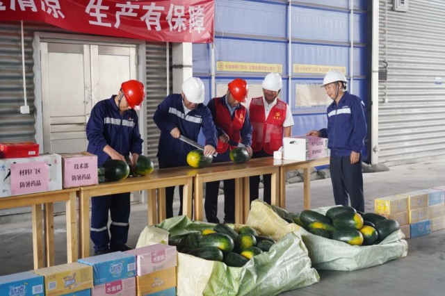 活動(dòng)現(xiàn)場(chǎng),慰問(wèn)小組邊切西瓜邊分物資,帶來(lái)一場(chǎng)“及時(shí)雨”,驅(qū)散連日酷暑,讓一線(xiàn)員工感受到實(shí)實(shí)在在的清涼體驗(yàn)。同時(shí),慰問(wèn)小組還與員工們親切交流,聽(tīng)取需求建議,進(jìn)行開(kāi)門(mén)教育,再三叮囑大家在高溫期間要時(shí)刻注意防暑,強(qiáng)化安全生產(chǎn)意識(shí),做好個(gè)人安全防護(hù),為中偉各項(xiàng)事業(yè)再創(chuàng)佳績(jī)、再立新功。