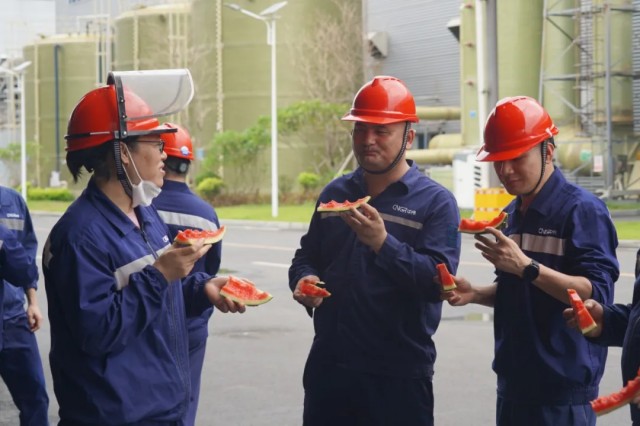 七月驕陽(yáng)似火,面對(duì)“戰(zhàn)高溫、保生產(chǎn)”的考驗(yàn),欽州產(chǎn)業(yè)基地總經(jīng)理焦華等班子成員帶領(lǐng)黨員先鋒隊(duì)和志愿者服務(wù)隊(duì),為奮戰(zhàn)在一線(xiàn)的員工們送上清甜西瓜、解暑飲品及防暑物資,切實(shí)將"為員工辦實(shí)事"的責(zé)任擔(dān)當(dāng)落到實(shí)處。