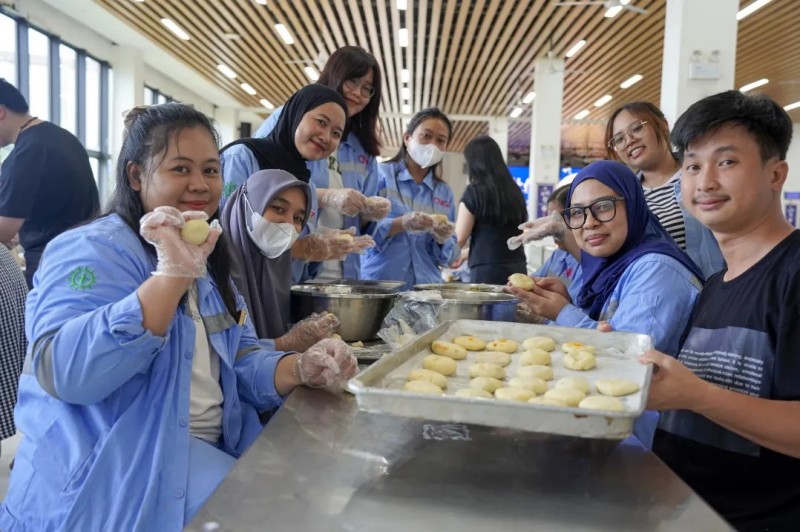 為了給大家創(chuàng)造美好的節(jié)日記憶,莫羅瓦利產(chǎn)業(yè)基地在中秋節(jié)當(dāng)天開(kāi)展了“月餅制作活動(dòng)”?;顒?dòng)現(xiàn)場(chǎng),中、印尼籍員工齊聚一堂,在專(zhuān)業(yè)廚師的指導(dǎo)下共同制作專(zhuān)屬創(chuàng)意月餅。大家在交流與協(xié)作中體驗(yàn)手作的樂(lè)趣,一塊塊月餅不僅承載著節(jié)日的甜蜜,更成為連接不同文化背景員工之間的情感紐帶,進(jìn)一步加深了團(tuán)隊(duì)情誼與文化理解。