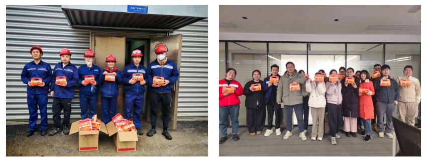服務(wù)煥新之余,亦有美味慰藉人心?;厥程锰貏e準(zhǔn)備豐盛的新年加餐,一份份香氣撲鼻的美食,搭配新鮮可口的水果,被送至員工手中,讓大家感受“家”的味道和溫暖。