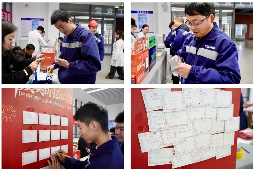 工牌煥新服務(wù)站同樣人氣不減,這里為員工更換全新工牌卡套及掛脖繩,助力大家以更清爽的形象,迎接新一年的工作與挑戰(zhàn)。而作為整場活動的“回憶擔(dān)當(dāng)”——年度煥新記憶站,更是掀起了一波分享熱潮,員工們紛紛提筆,認(rèn)真寫下2025年廠區(qū)的三個升級變化點,在細(xì)數(shù)基地發(fā)展點滴、分享收獲喜悅的同時,領(lǐng)取2026年中偉定制臺歷,將新年的美好期許與珍貴記憶一同珍藏。