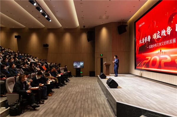 大會(huì)伊始,中偉股份財(cái)務(wù)中心總經(jīng)理朱宗元以“追夢(mèng)路上 行穩(wěn)致遠(yuǎn)”為主題,向全體參會(huì)人員詳細(xì)匯報(bào)了2021年公司的經(jīng)營概況,并對(duì)2022年的整體預(yù)算方案進(jìn)行了介紹。他表示,在過去的一年中,中偉生產(chǎn)經(jīng)營主要指標(biāo)再創(chuàng)新高,發(fā)展態(tài)勢(shì)持續(xù)向好。面對(duì)行業(yè)的激烈競(jìng)爭(zhēng),公司充分彰顯了發(fā)展的韌性與潛力,很好地順應(yīng)了產(chǎn)業(yè)發(fā)展趨勢(shì),實(shí)現(xiàn)了經(jīng)營的穩(wěn)步前行。隨后,鄧偉明以“認(rèn)清形勢(shì)、順應(yīng)趨勢(shì)、同心協(xié)力,實(shí)現(xiàn)中偉又好又快發(fā)展”為主題發(fā)表了重要講話,分別就當(dāng)前中偉的發(fā)展形勢(shì)、行業(yè)趨勢(shì)進(jìn)行了深度剖析與分享,并確定了“國際化、多元化、精益化”為2022年度中偉全年發(fā)展主題。