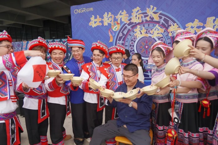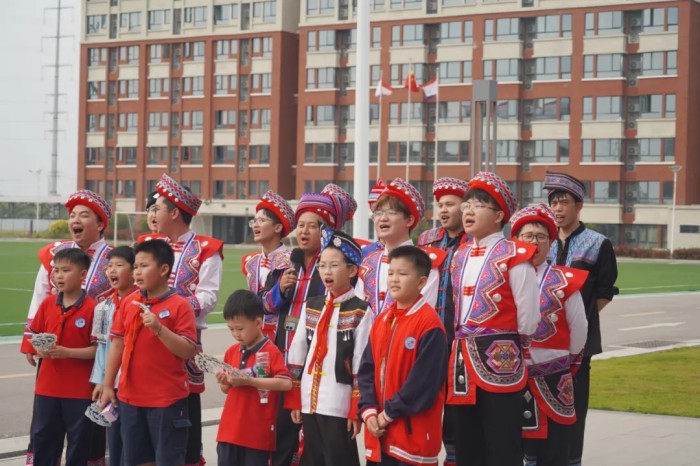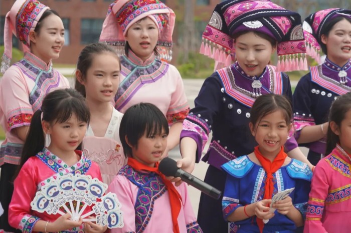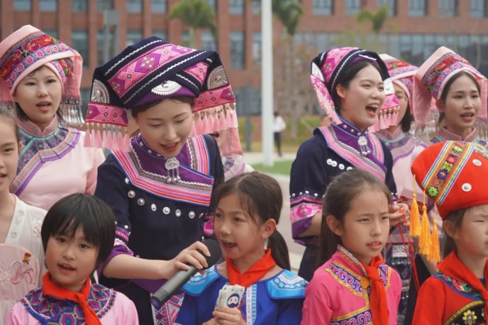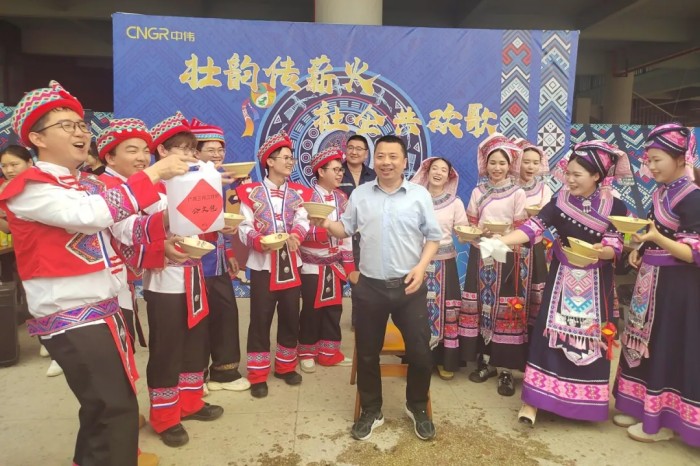 隨著一陣清脆的竹笛聲響起,基地員工、社區(qū)居民和學校師生們身著靚麗民族服飾隆重登場,化身“劉三姐”和“阿牛哥”進行山歌對唱。大家以歌言志、以歌會友、以歌傳情,唱響社企共建的優(yōu)美旋律,讓動聽山歌在新時代的舞臺上煥發(fā)出全新光彩。