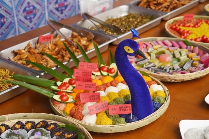 活動現(xiàn)場不僅是歌聲的海洋、舞蹈的世界,更是美食的天堂。椰汁千層糕、彩色糯米飯、白薯籺、酸嘢等20類廣西特色小吃琳瑯滿目,讓人垂涎欲滴。中偉欽州產(chǎn)業(yè)基地總經(jīng)理焦華等領導也一同參與活動,大家發(fā)揮無限想象力和創(chuàng)造力,把糯米飯擺成“CNGR中偉”的形狀,用七色糯米飯裝點中國大區(qū)“黨工團婦七色活動精神”,以別出心裁的方式,引導廣大員工堅決貫徹落實好企業(yè)文化和活動精神,堅持以飽滿熱情、昂揚斗志打贏生產(chǎn)經(jīng)營攻堅戰(zhàn)。